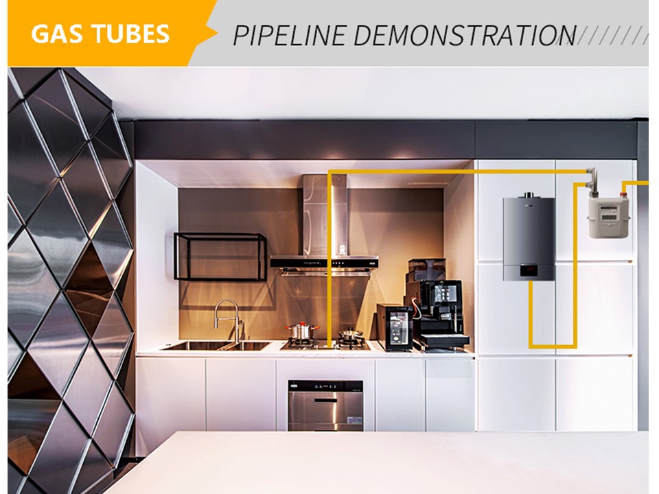 Application: Pipeline of gas, LPG, natural gas, biogas and connections to gas appliances.